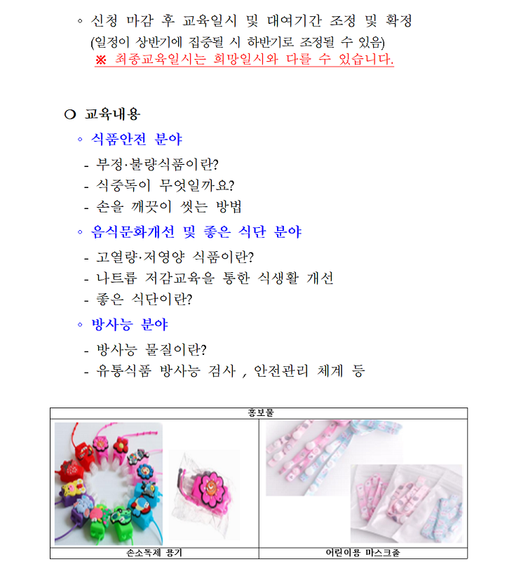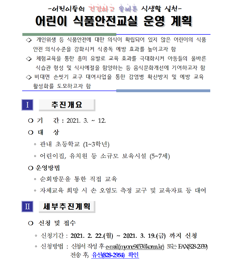어린이들의 건강하고 올바른 식생활 실천 어린이 식품안전교실 운영 계획 > 공지사항