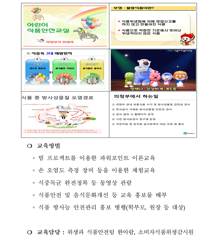 어린이들의 건강하고 올바른 식생활 실천 어린이 식품안전교실 운영 계획