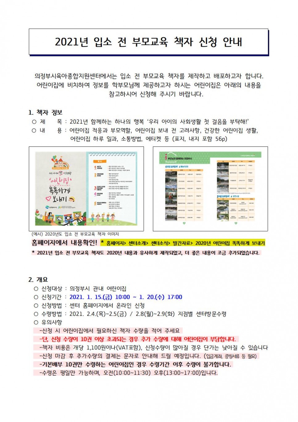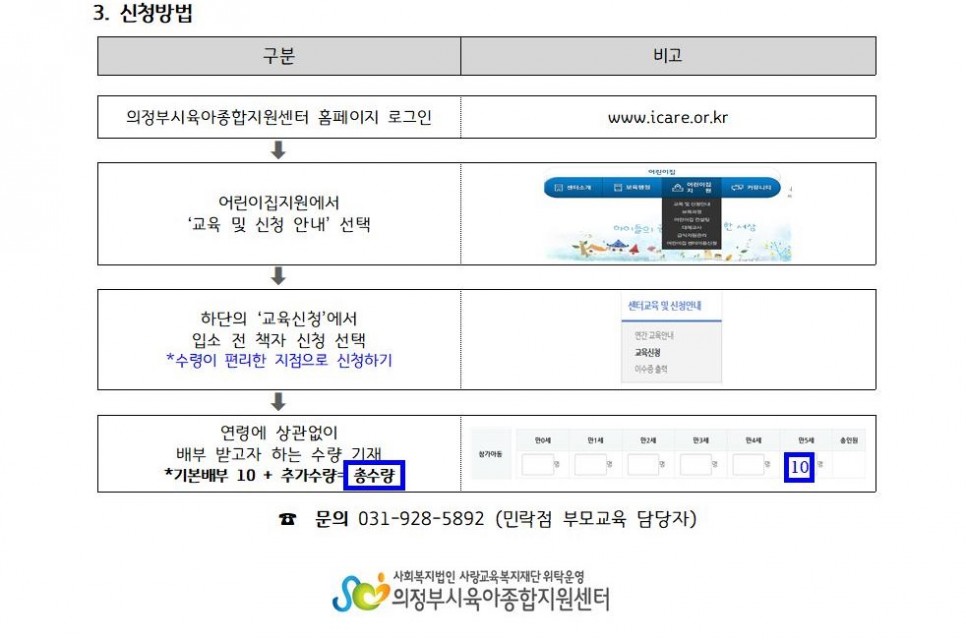 2021년 입소 전 부모교육 책자 신청 안내 페이지 정보 작성자 의정부센터 댓글 0건 조회 3,627회 작성일 2021-01-11 15:36 본문 보육통합시스템 업무연락으로 공문과 안내문 전송, 확인 후 신청 바랍니다. 목록 이전글의정부시육아종합지원센터 직원(상담지원인력) 채용 공고 21.01.18 다음글의정부시육아종합지원센터 최종 합격자 발표(운영보조) 21.01.04