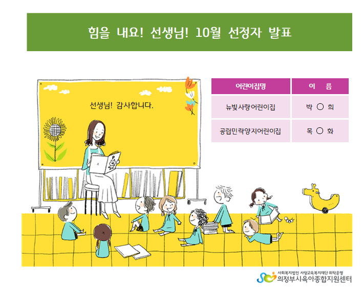 10월 보육교직원 직무스트레스 완화 프로그램 '힘을 내요! 선생님' 선정자 발표