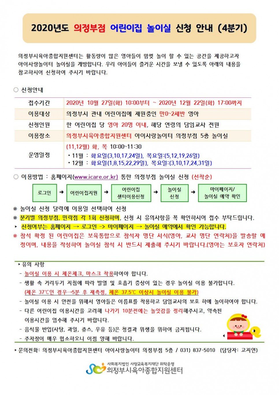 [의정부점] 4분기(11,12월) 아이사랑놀이터 놀이실 신청 안내 > 공지사항