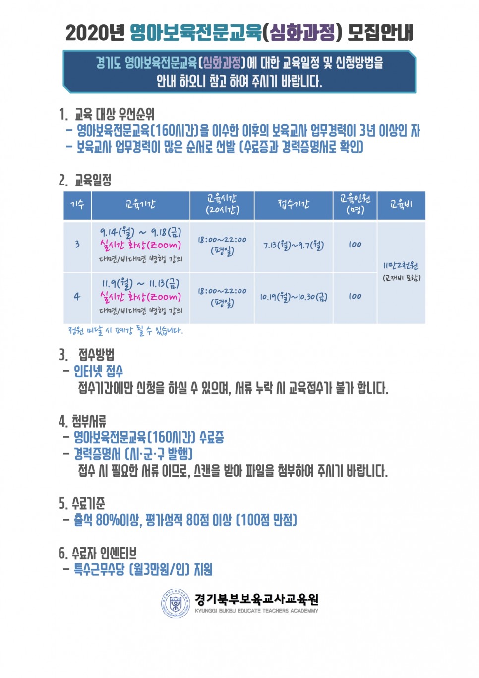 영아보육전문교육 기본과정 및 심화과정 모집안내