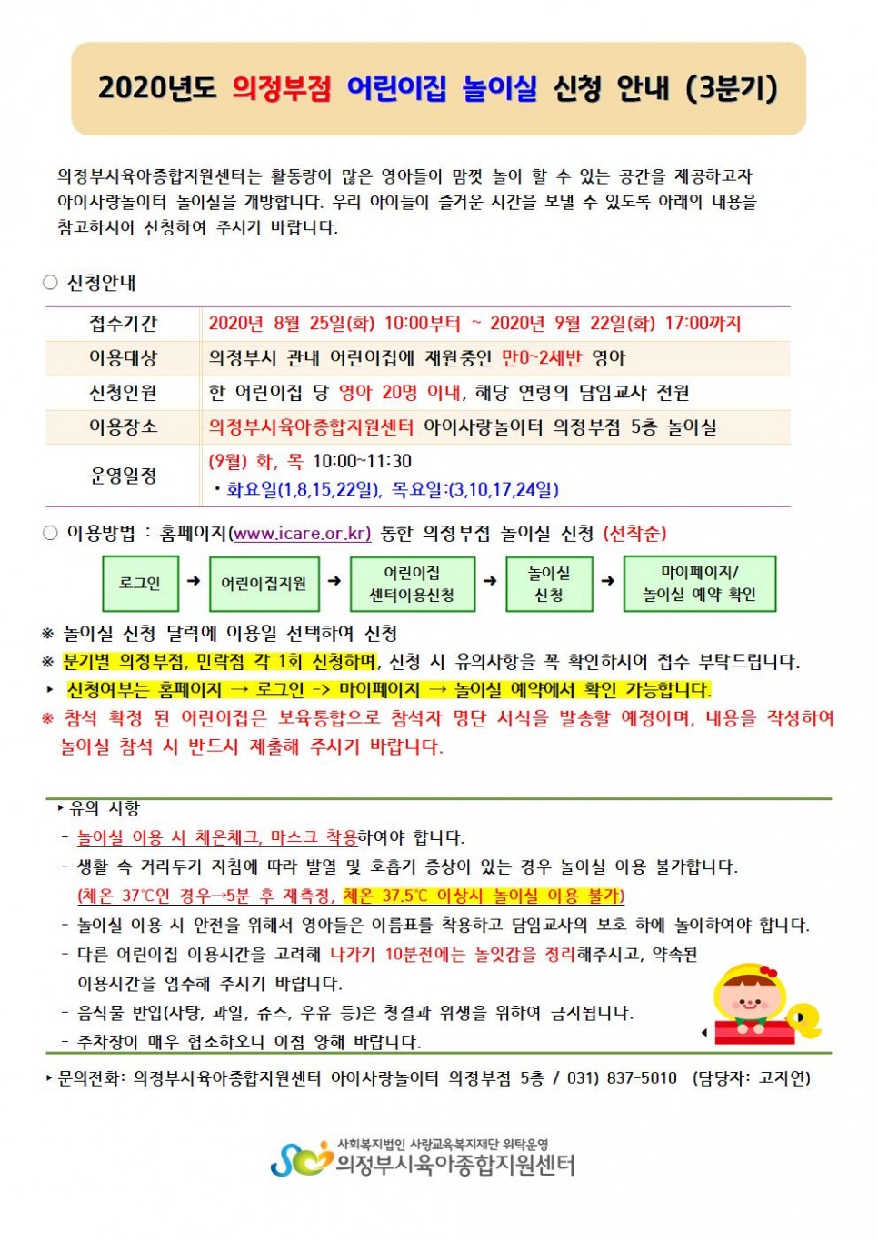 [의정부점] 2020년 3분기(9월) 아이사랑놀이터 놀이실 신청 안내 (연기) > 공지사항