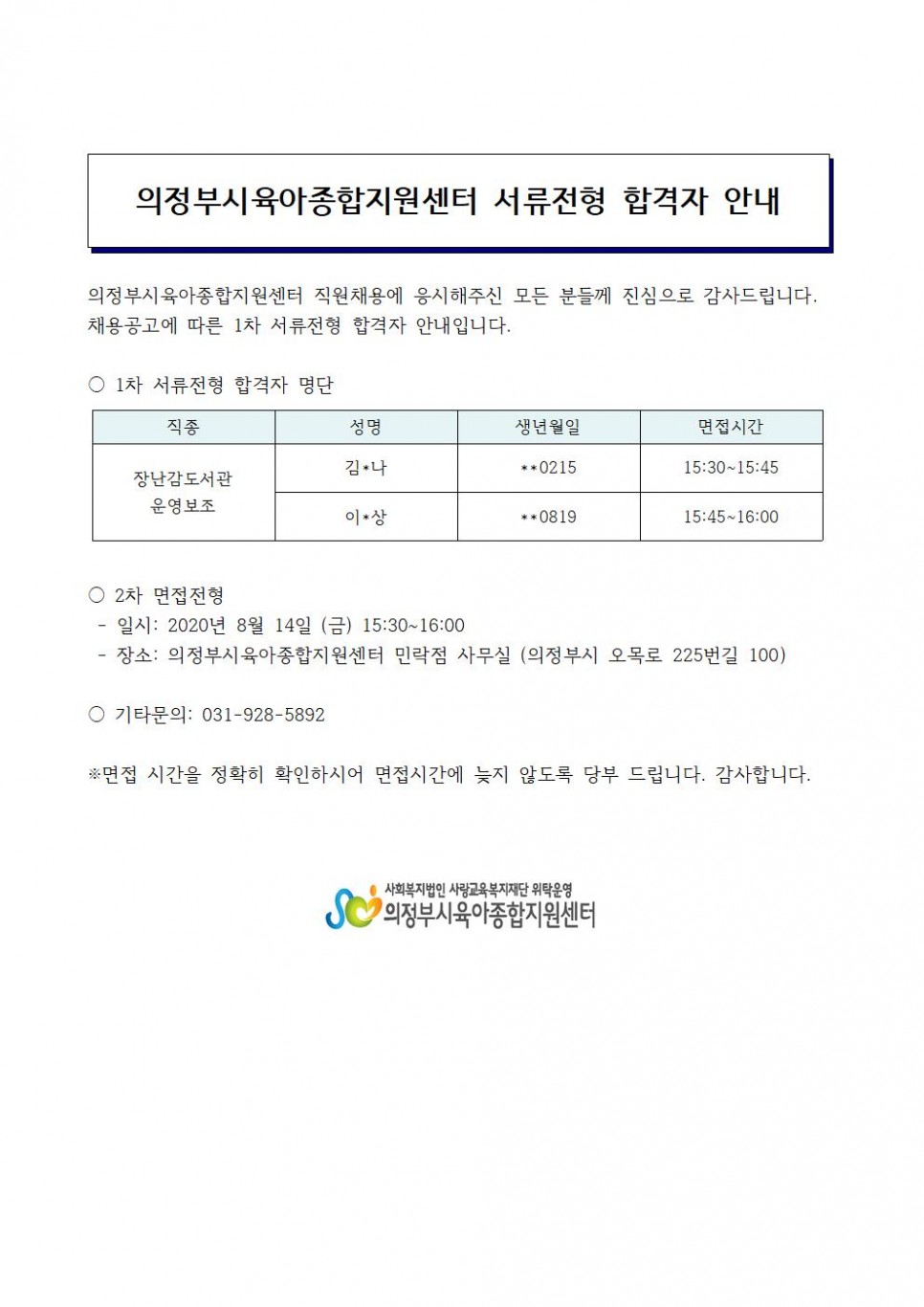 1차 서류전형 합격자 안내(운영보조) > 공지사항