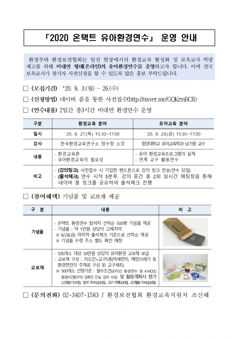2020년 「온택트 유아환경연수」 운영 안내 > 공지사항