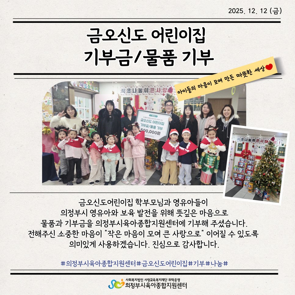 의정부 금오신도어린이집 기부금 및 물품 기부 > 공지사항