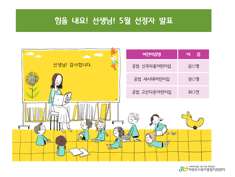 교직원 직무스트레스 해소 '5월 힘을 내요! 선생님!' 선정 안내