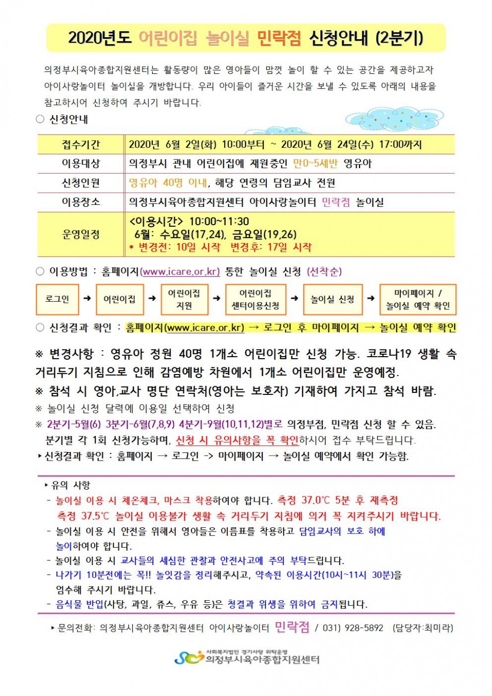 [민락점] 2분기(6월) 아이사랑놀이터 놀이실 신청 안내 > 공지사항