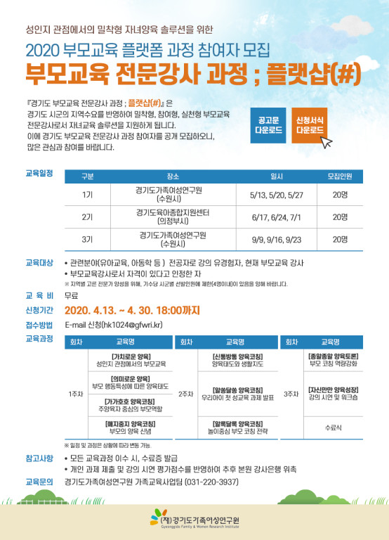 [경기도가족여성연구원]2020 경기도 부모교육 전문강사과정 '플랫샵(#) 참여자 모집 > 공지사항