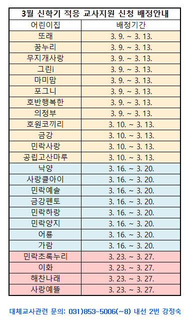 [대체교사 지원 사업] 3월 신학기 적응 교사 지원 신청 배정안내