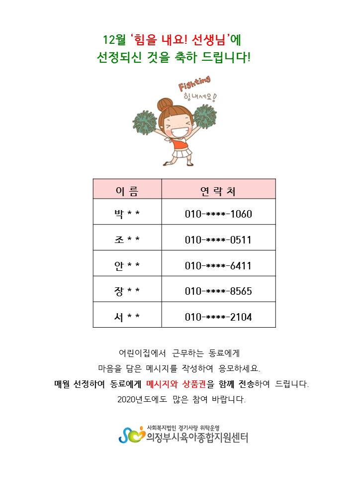12월 [힘을 내요! 선생님] 선정자 발표