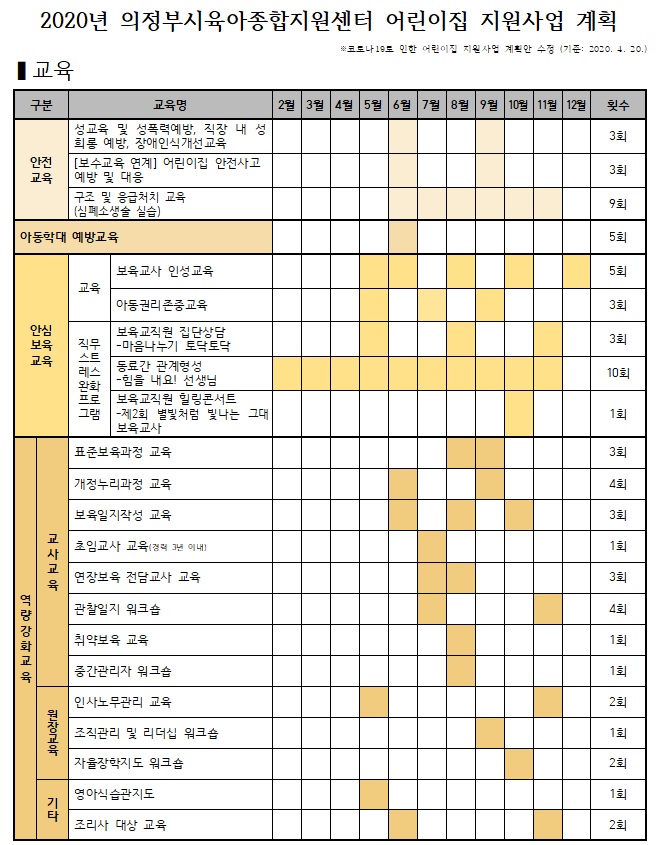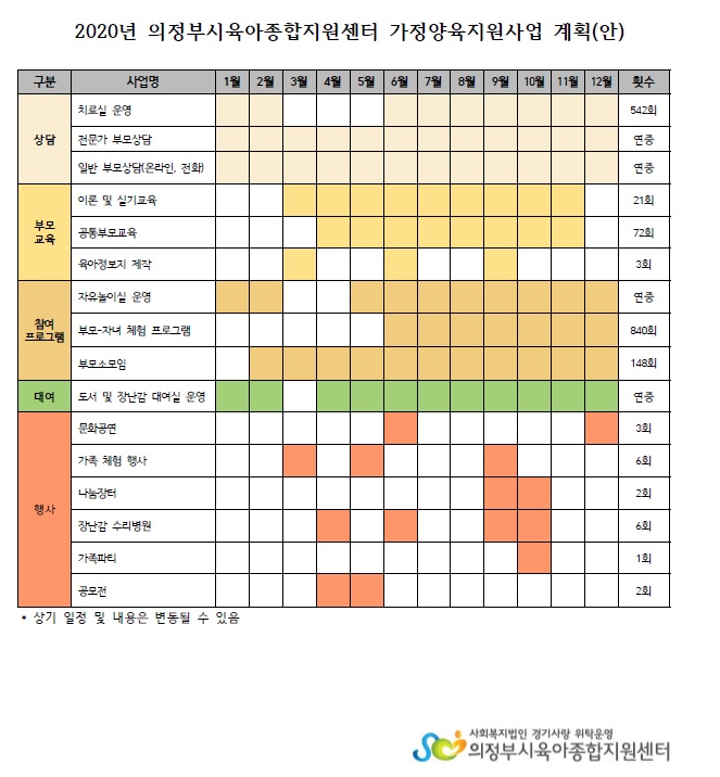 [연간계획안]2020년 어린이집 지원사업, 가정양육 지원사업 페이지 정보 작성자 의정부센터 댓글 0건 조회 5,168회 작성일 2019-12-16 13:24 본문 [연간계획안]2020년 어린이집 지원사업 계획안(0420 수정)[연간계획안]2020년 가정양육 지원사업 계획안(0420 수정) 목록 이전글2019년 어린이집 평가제 2기 결과발표 19.12.18 다음글12월 [힘을 내요! 선생님] 선정자 발표 19.12.05