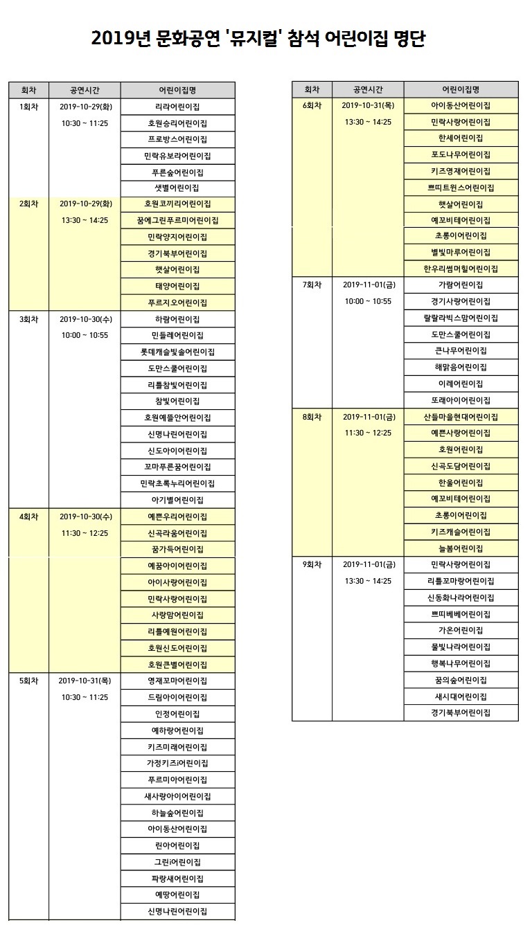 2019년 문화공연 '뮤지컬' 참석 어린이집 명단