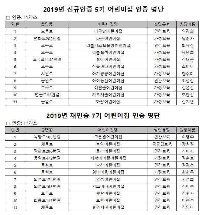 2019년 10월 평가인증 통과어린이집 안내 > 공지사항