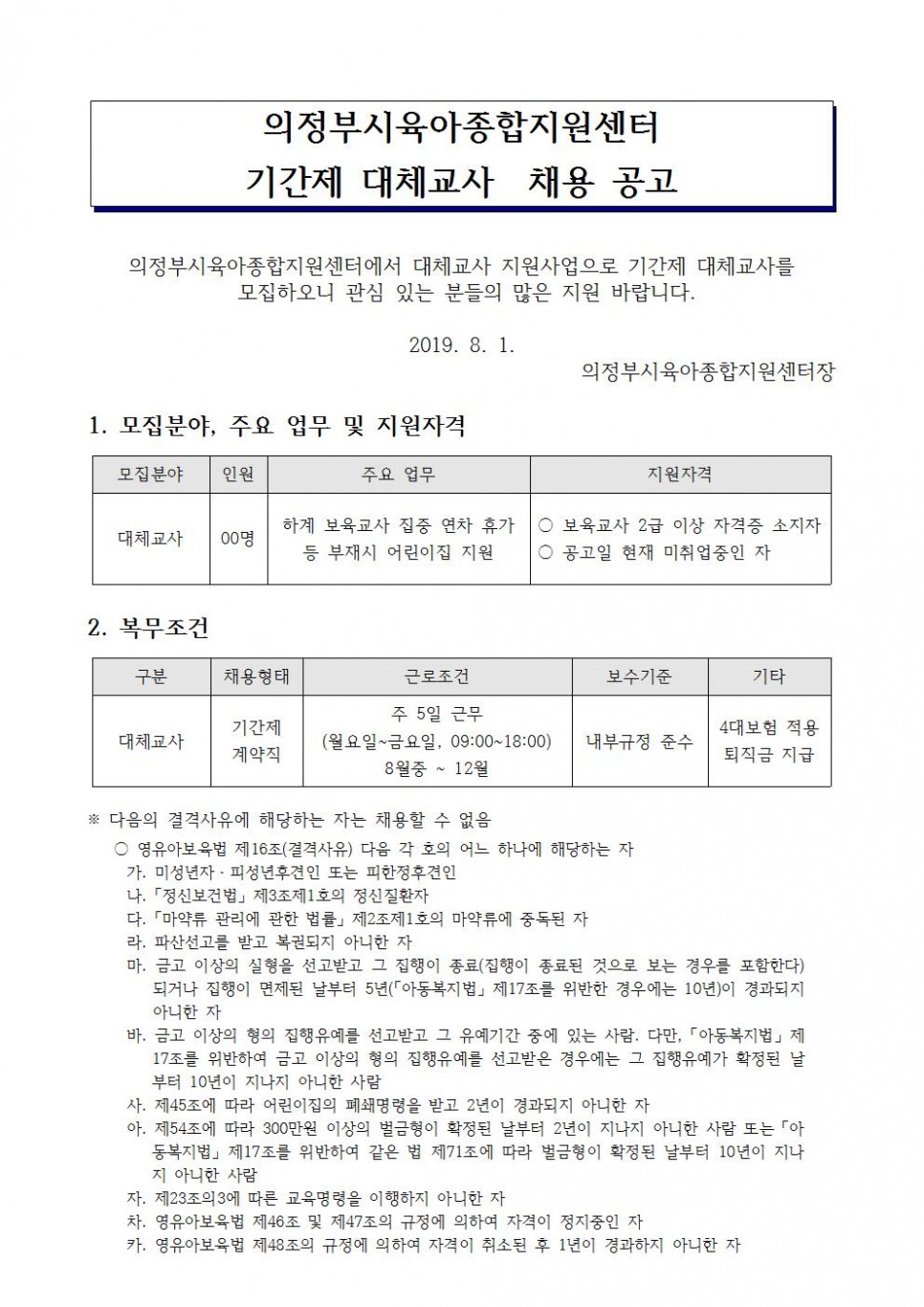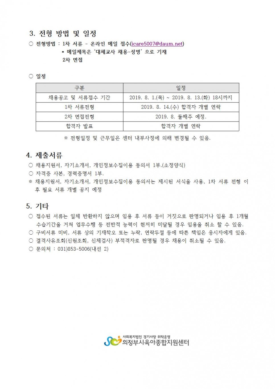 의정부시육아종합지원센터 기간제 대체교사 채용 공고 페이지 정보 작성자 의정부센터 댓글 0건 조회 3,602회 작성일 2019-08-01 13:33 본문 의정부시육아종합지원센터 기간제 대체교사 채용 공고문을 게시하오니 많은 지원 바랍니다. 목록 이전글2019 쌀 간식데이 운영 어린이집 모집 19.08.02 다음글2019년 의정부시도서관 <북스타트 책꾸러미 선물> 안내 19.07.29