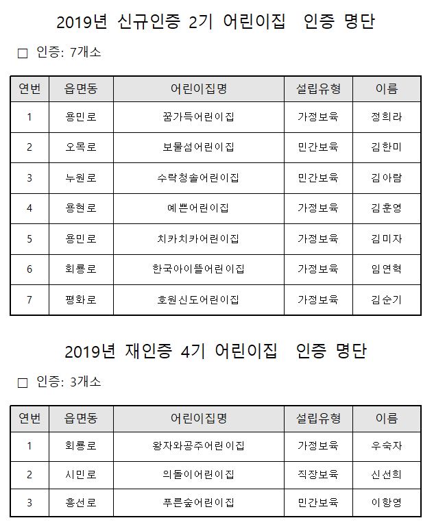 2019년 7월 평가인증 통과어린이집 안내 > 공지사항
