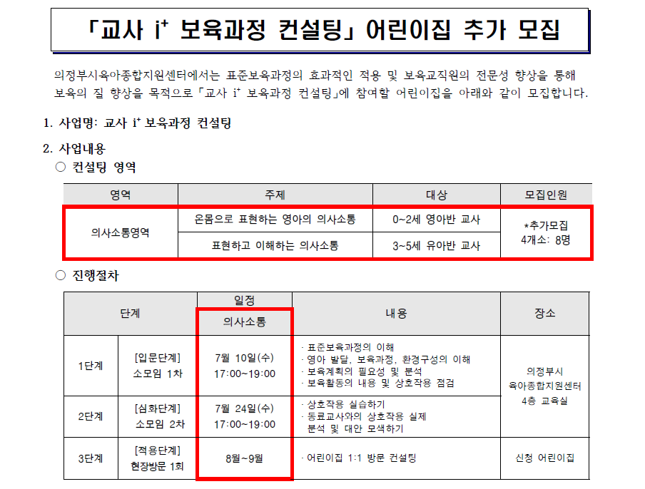 <추가모집> 교사 i+ 보육과정 컨설팅 신청 안내