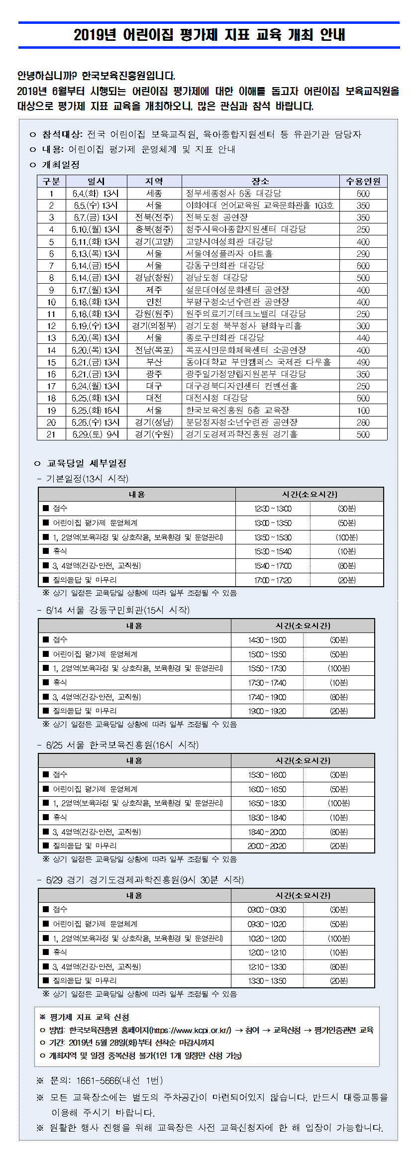 2019년 어린이집 평가제 지표 교육 개최 안내