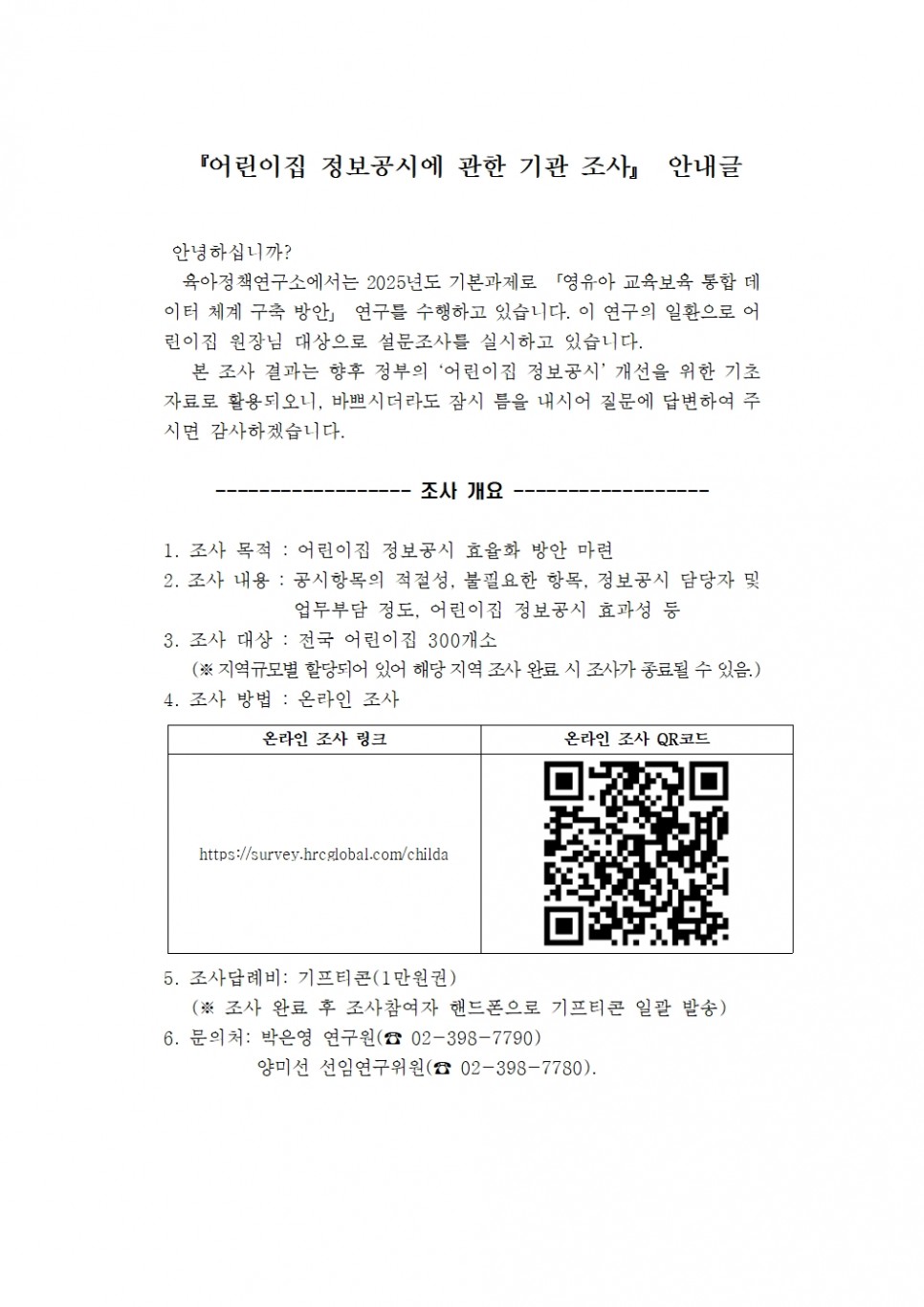 『어린이집 정보공시에 관한 기관 조사』 안내 > 공지사항