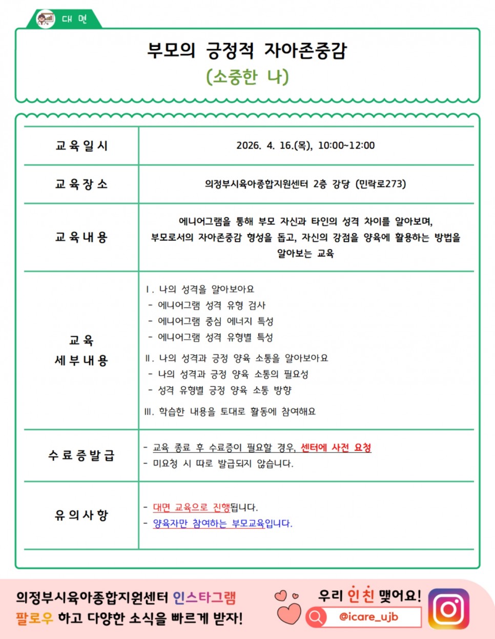 부모의 긍정적 자아존중감 부모교육 (소중한 나)