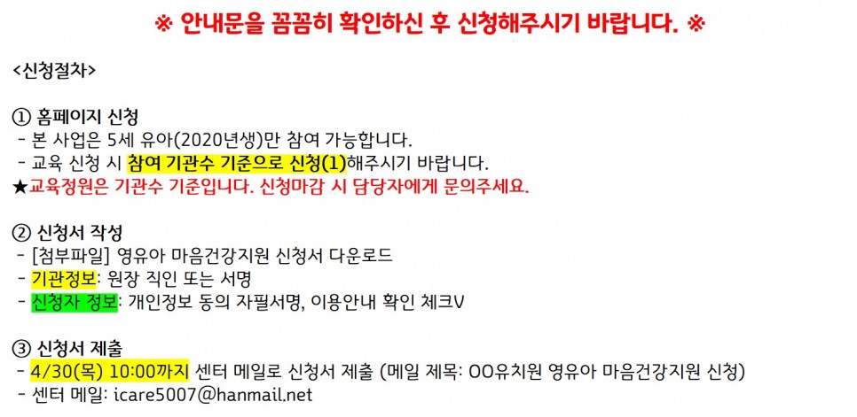 ★추가★ [영유아 마음건강지원] 유치원 신청