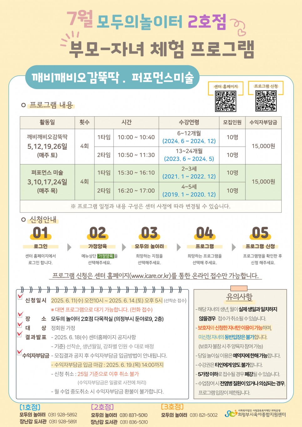 [의정부] 대면 7월 부모-자녀 체험 프로그램 신청 안내 (깨비깨비오감뚝딱, 퍼포먼스 미술) > 공지사항