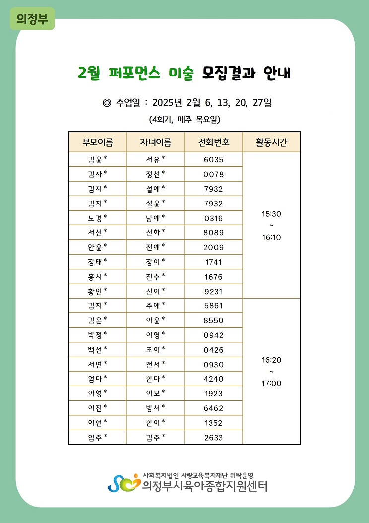 [의정부] 2월 부모-자녀 체험 프로그램 모집결과 안내 > 공지사항
