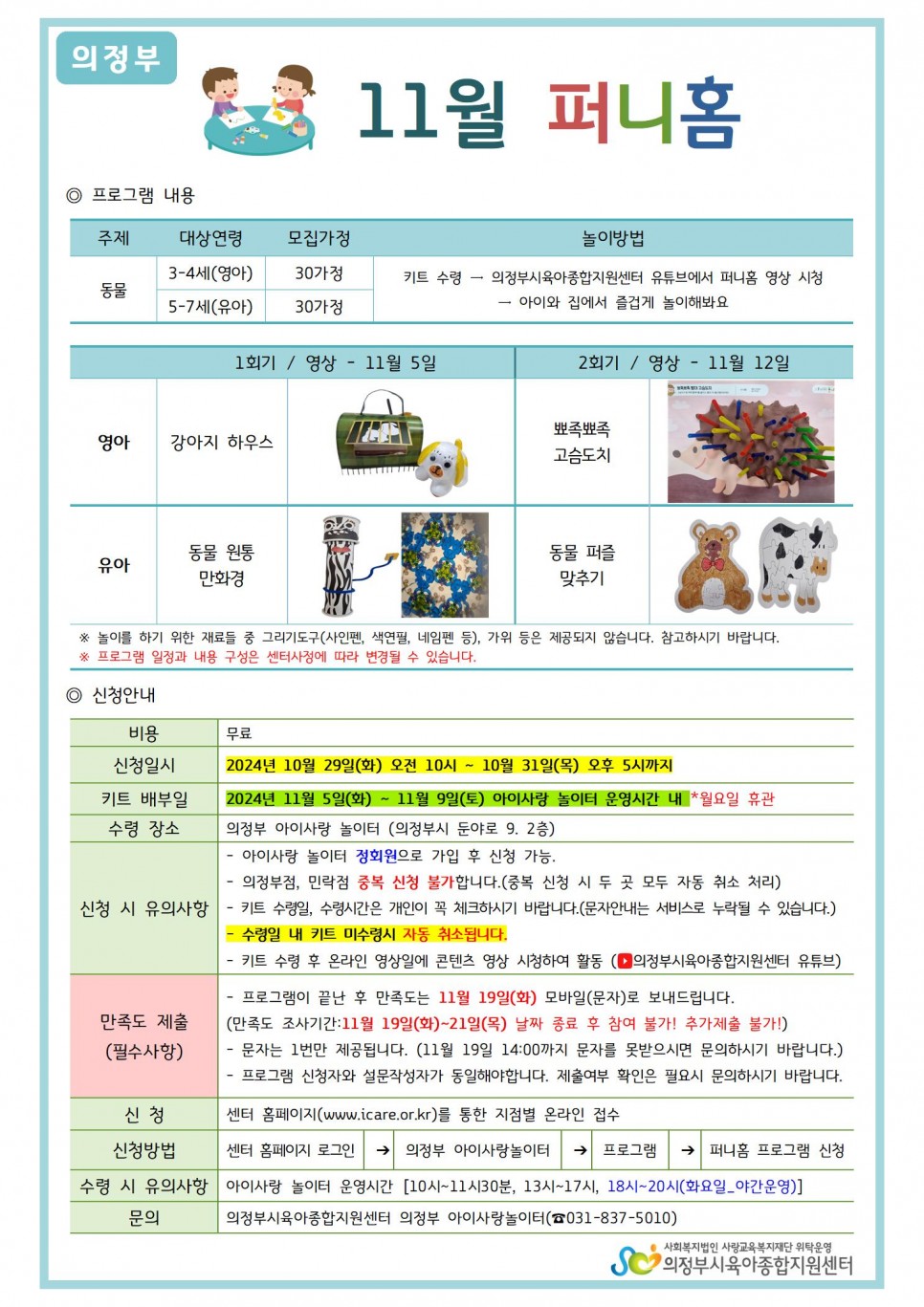 [의정부, 민락] 집에서 즐겁게 놀자! 11월 퍼니홈 신청안내 > 공지사항