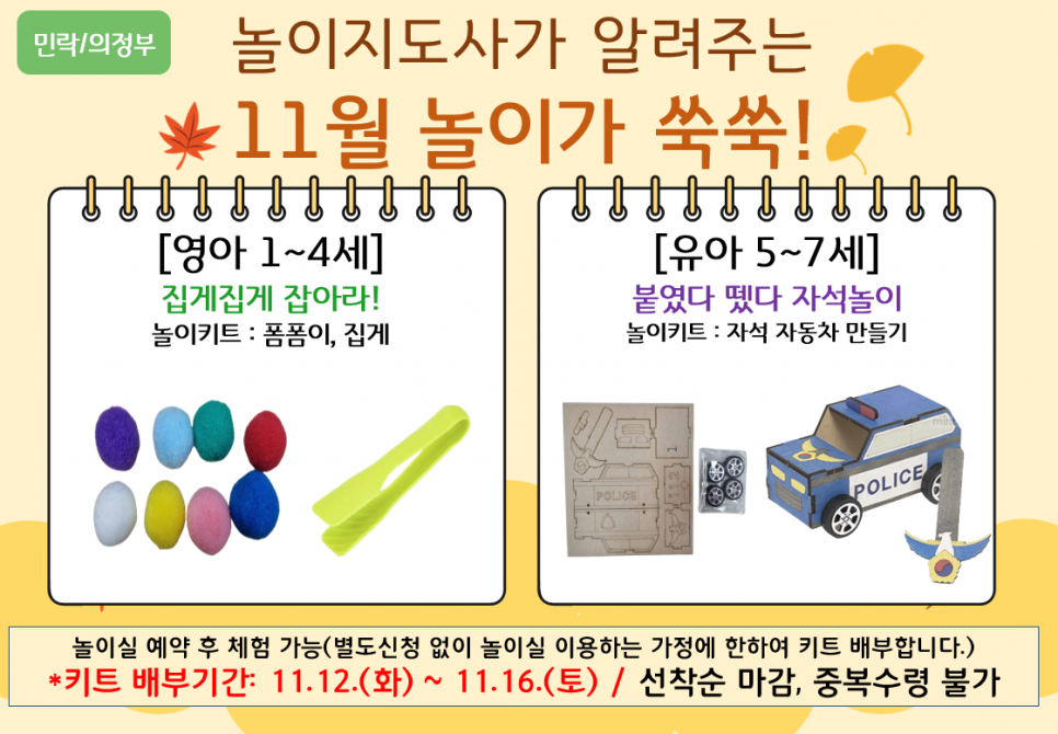 [의정부,민락] 놀이지도사가 알려주는 11월 '놀이가 쑥쑥' 놀이키트 배부 안내 > 공지사항