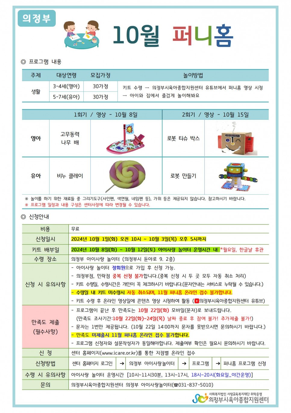 [의정부, 민락] 집에서 즐겁게 놀자! 10월 퍼니홈 신청안내