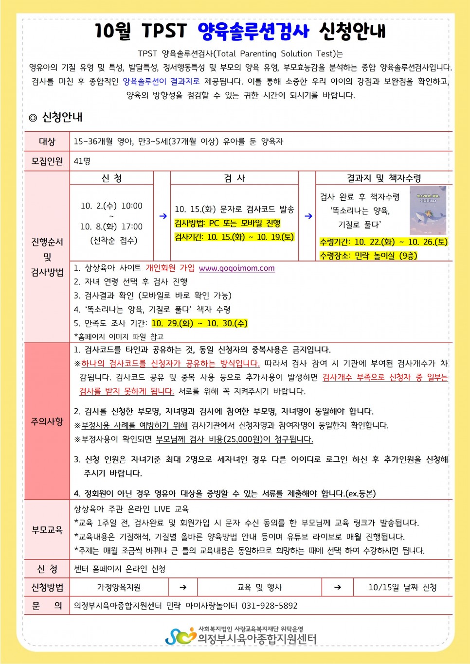 [놀이지도] 10월 TPST 양육솔루션검사 신청안내 > 공지사항