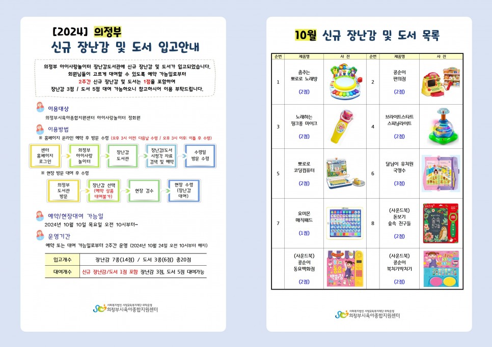 [의정부] 2024년 10월 장난감 도서관 신규 장난감 입고 안내 > 공지사항