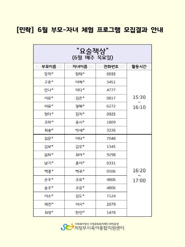 [민락] 6월 부모-자녀 체험 프로그램 모집결과 안내(요술책상) > 공지사항