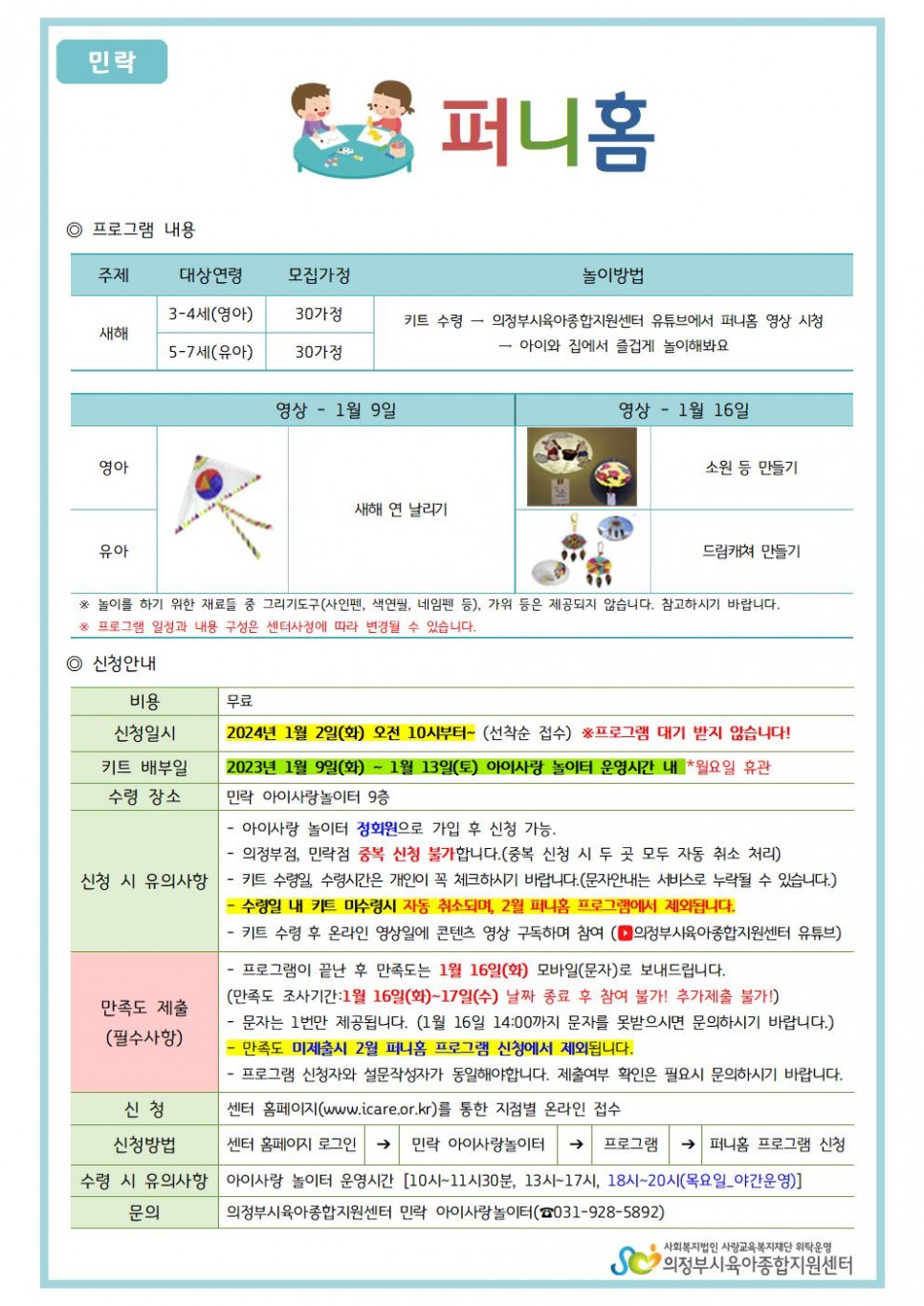 [의정부, 민락] 집에서 즐겁게 놀자! 1월 퍼니홈 신청안내 > 공지사항