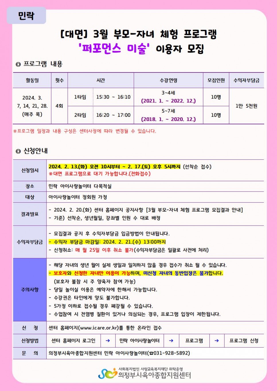 [민락] 대면 3월 부모-자녀 체험 프로그램 이용자 모집(퍼포먼스 미술) > 공지사항