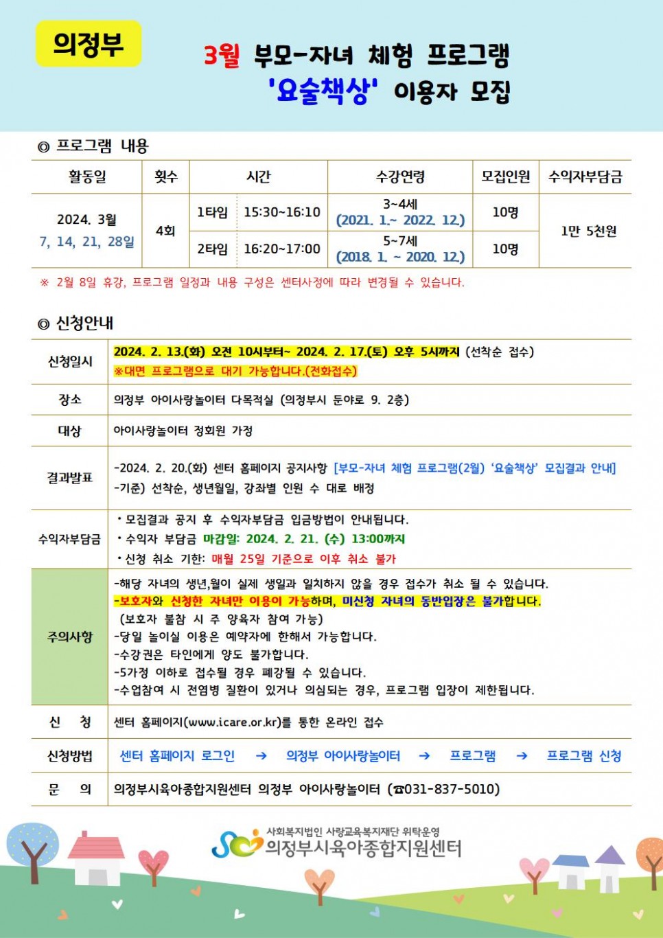 [의정부] 대면 3월 부모-자녀 체험 프로그램 이용자 모집(요술책상)