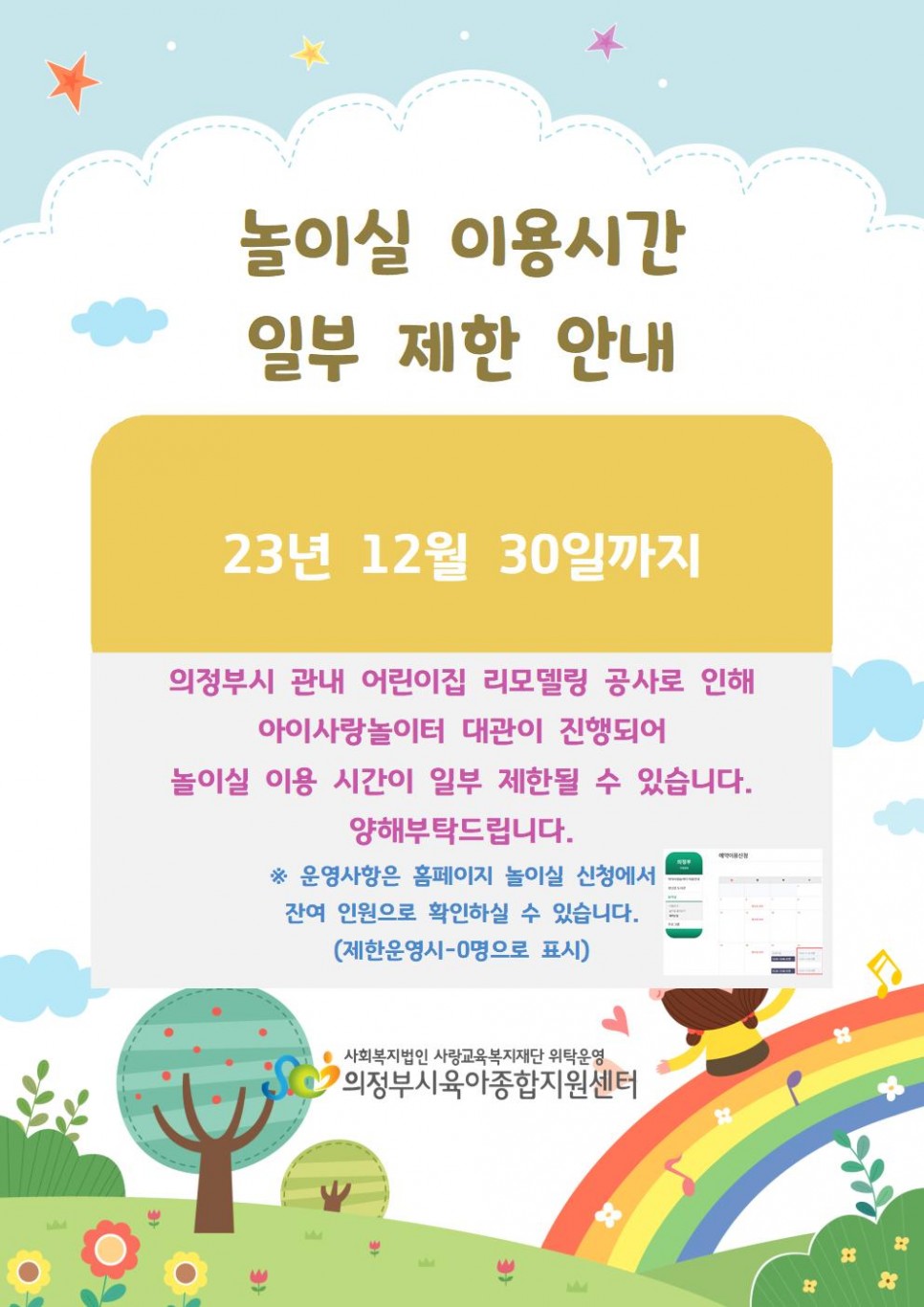 [의정부, 민락] 놀이실이용시간 일부 제한 안내 > 공지사항