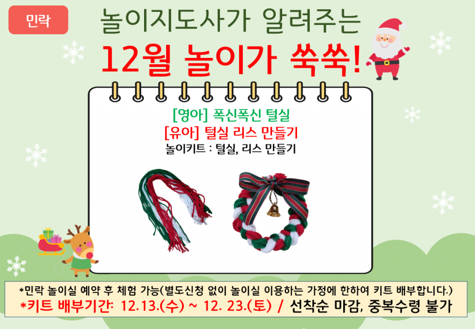 [민락] 놀이지도사가 알려주는 12월 '놀이가 쑥쑥' 놀이키트 배부 안내