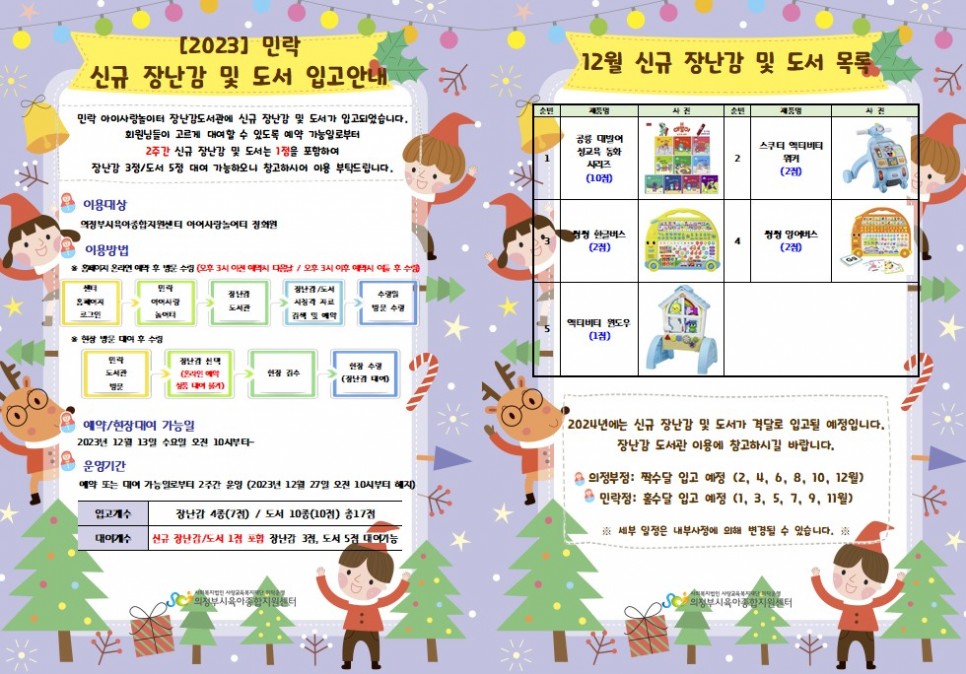 [민락] 2023년 12월 장난감 도서관 신규 장난감 입고 안내