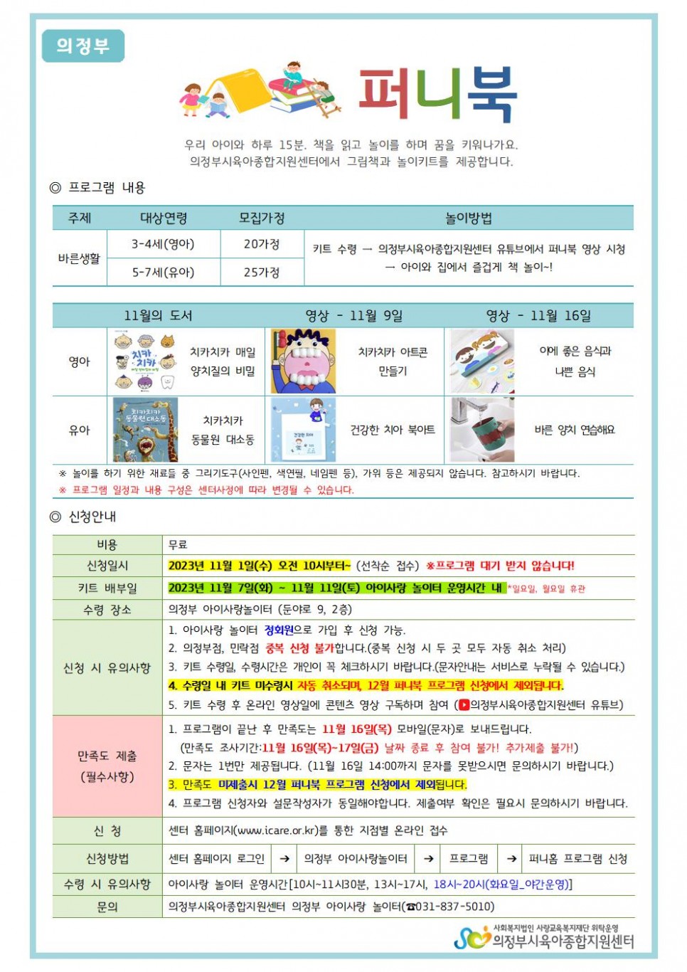 [의정부, 민락] 책이랑 즐겁게 놀자! 퍼니북(11월) 신청안내 > 공지사항