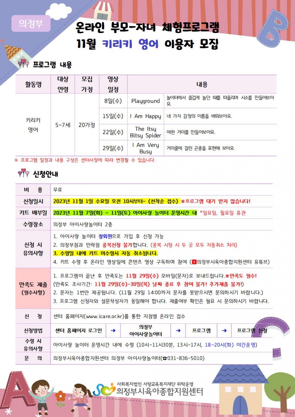 [의정부] 11월 온라인 부모-자녀 체험프로그램 '으라차차 체육, 키리키 영어' 신청안내