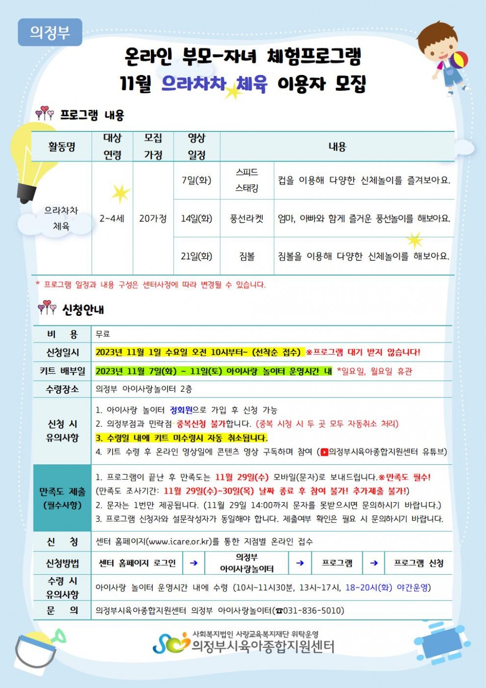 [의정부] 11월 온라인 부모-자녀 체험프로그램 '으라차차 체육, 키리키 영어' 신청안내 > 공지사항