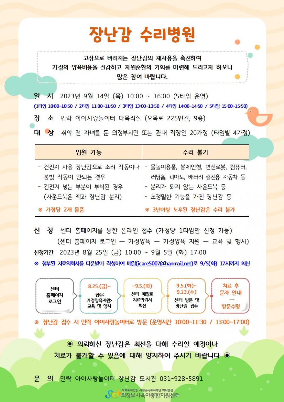 아이사랑놀이터 9월 장난감 수리병원 안내 > 공지사항