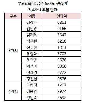 부모교육 '조금은 느려도 괜찮아' 3,4차시 추첨결과