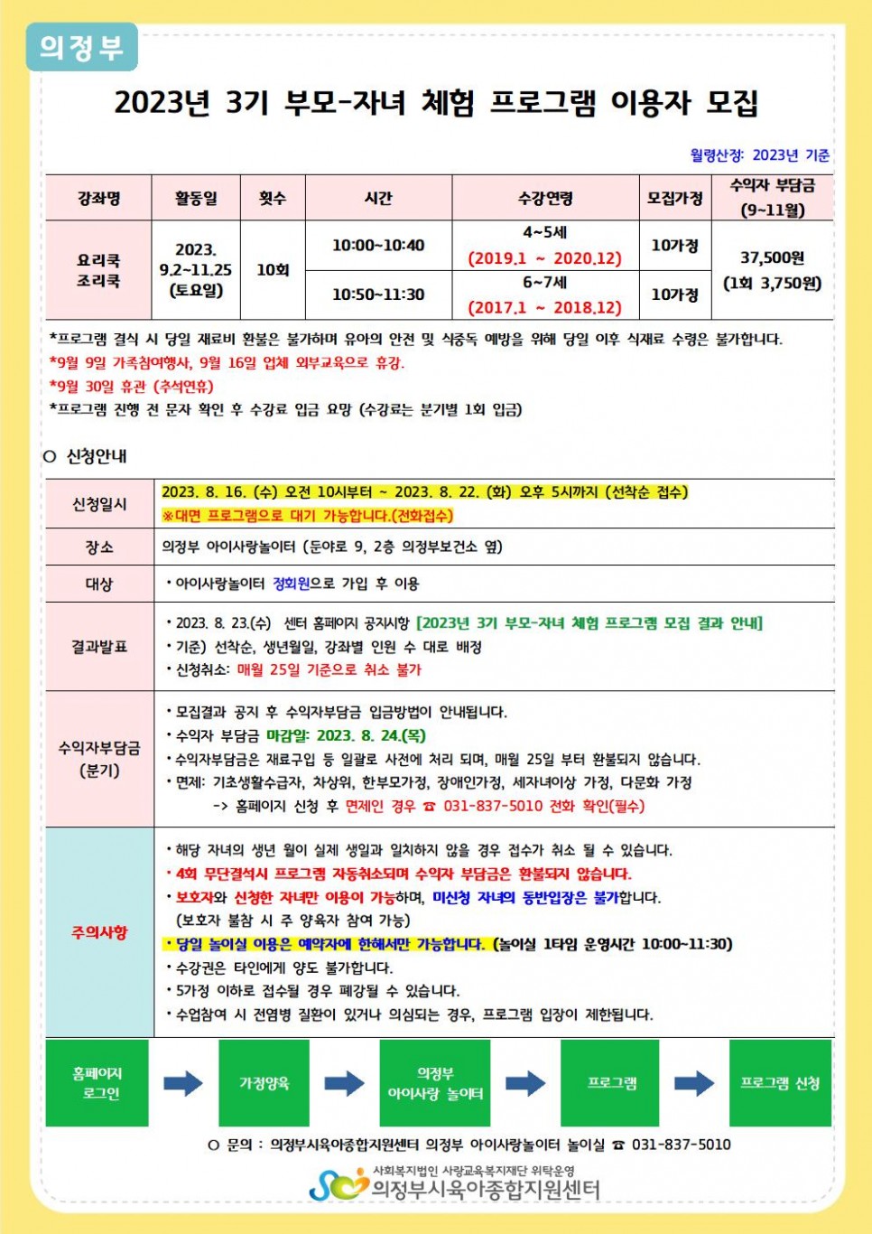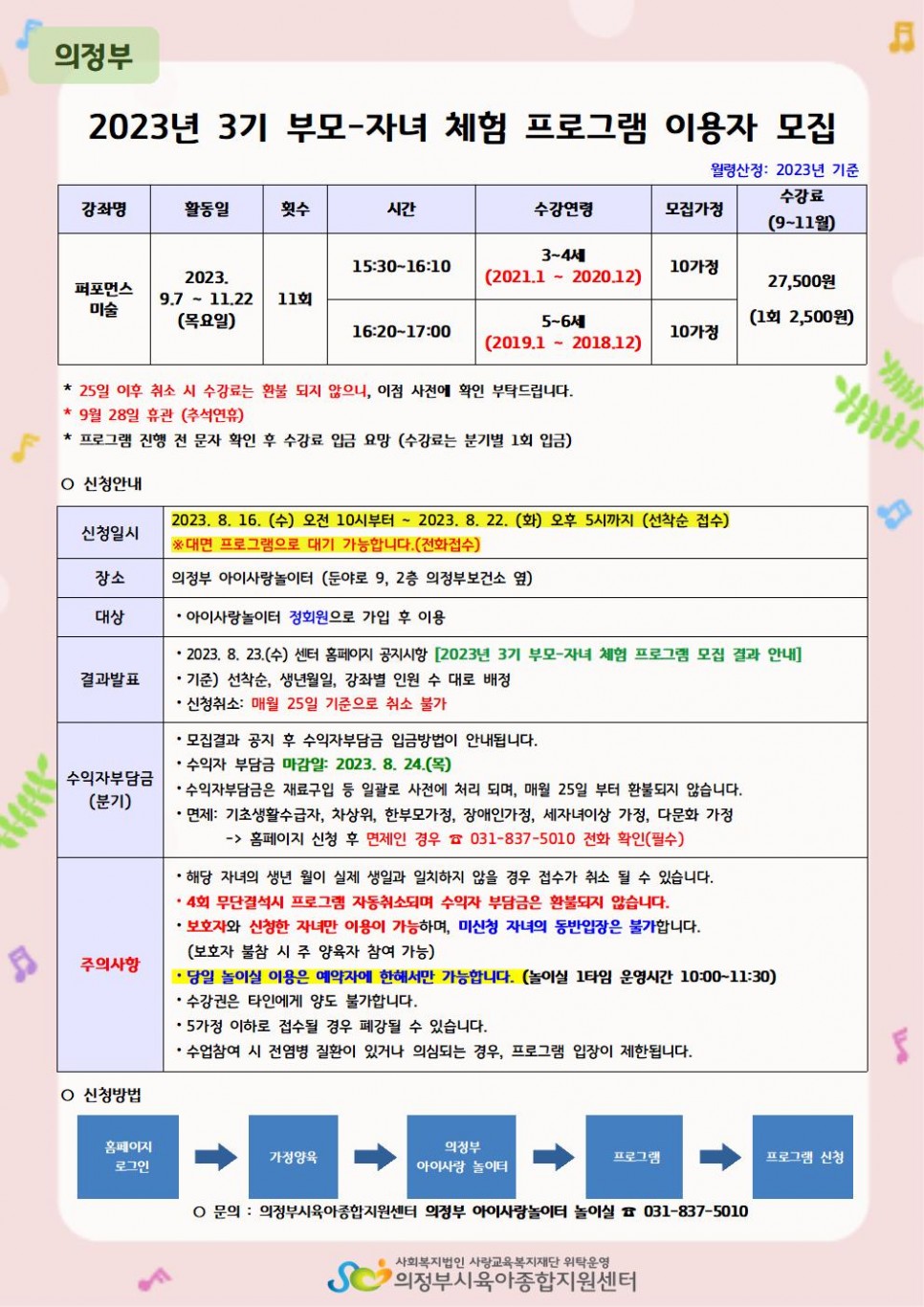 [의정부]2023년 3기 부모-자녀 체험 프로그램 이용자 모집(깨비깨비 오감뚝딱, 퍼포먼스 미술, 요리쿡 조리쿡)