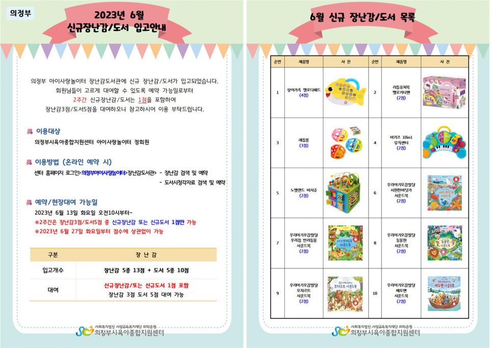 [의정부] 2023년 6월 장난감 도서관 신규 장난감 입고 안내 > 공지사항