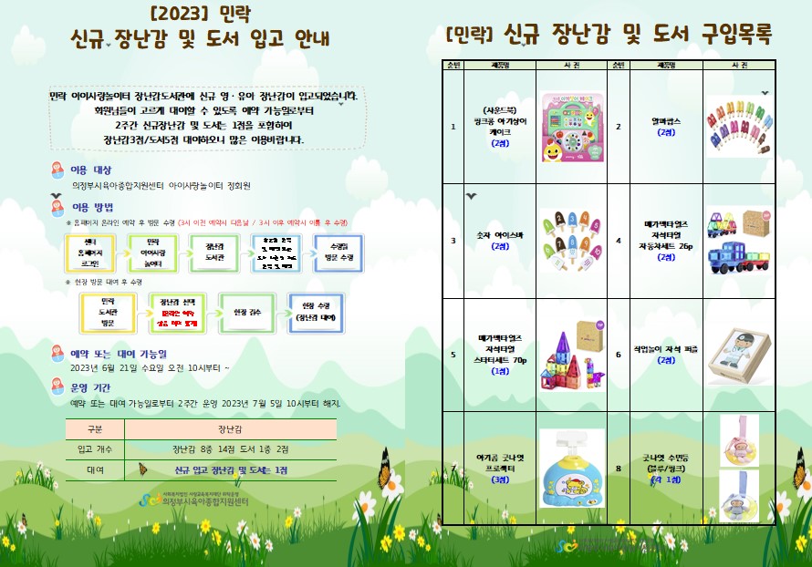 [민락] 2023년 6월 장난감 도서관 신규 장난감 입고 안내 > 공지사항
