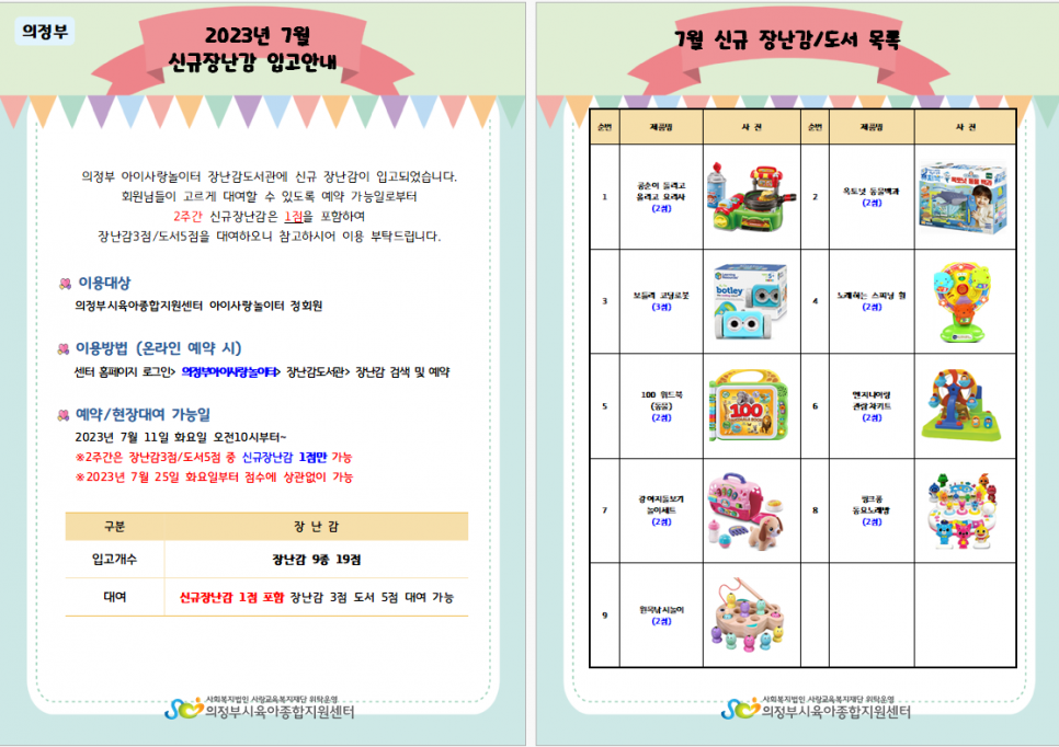 [의정부] 2023년 7월 장난감 도서관 신규 장난감 입고 안내 > 공지사항