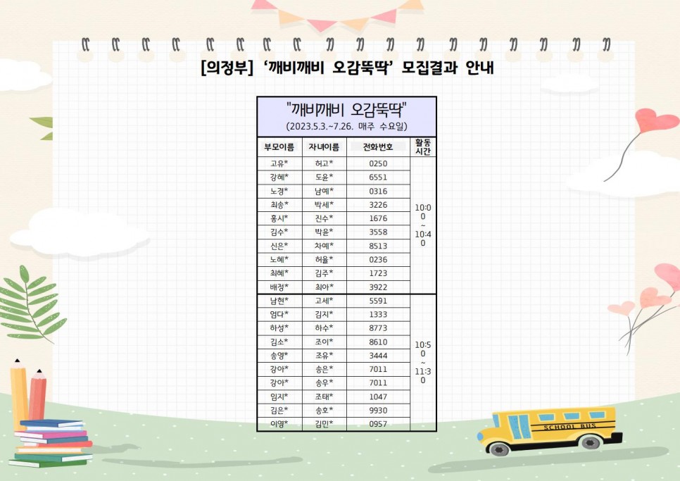 [의정부] 2023년 2기 부모-자녀 체험 프로그램 '신체놀이, 퍼포먼스 미술, 깨비깨비 오감뚝딱' 모집결과 안내
