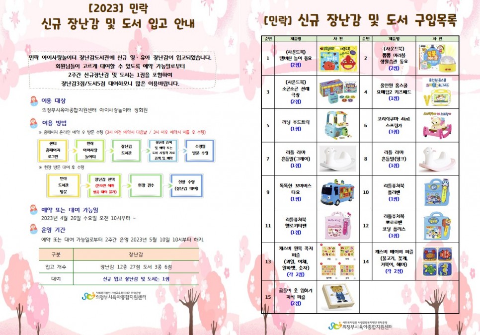 [민락] 2023년 4월 장난감 도서관 신규 장난감 입고 안내 > 공지사항